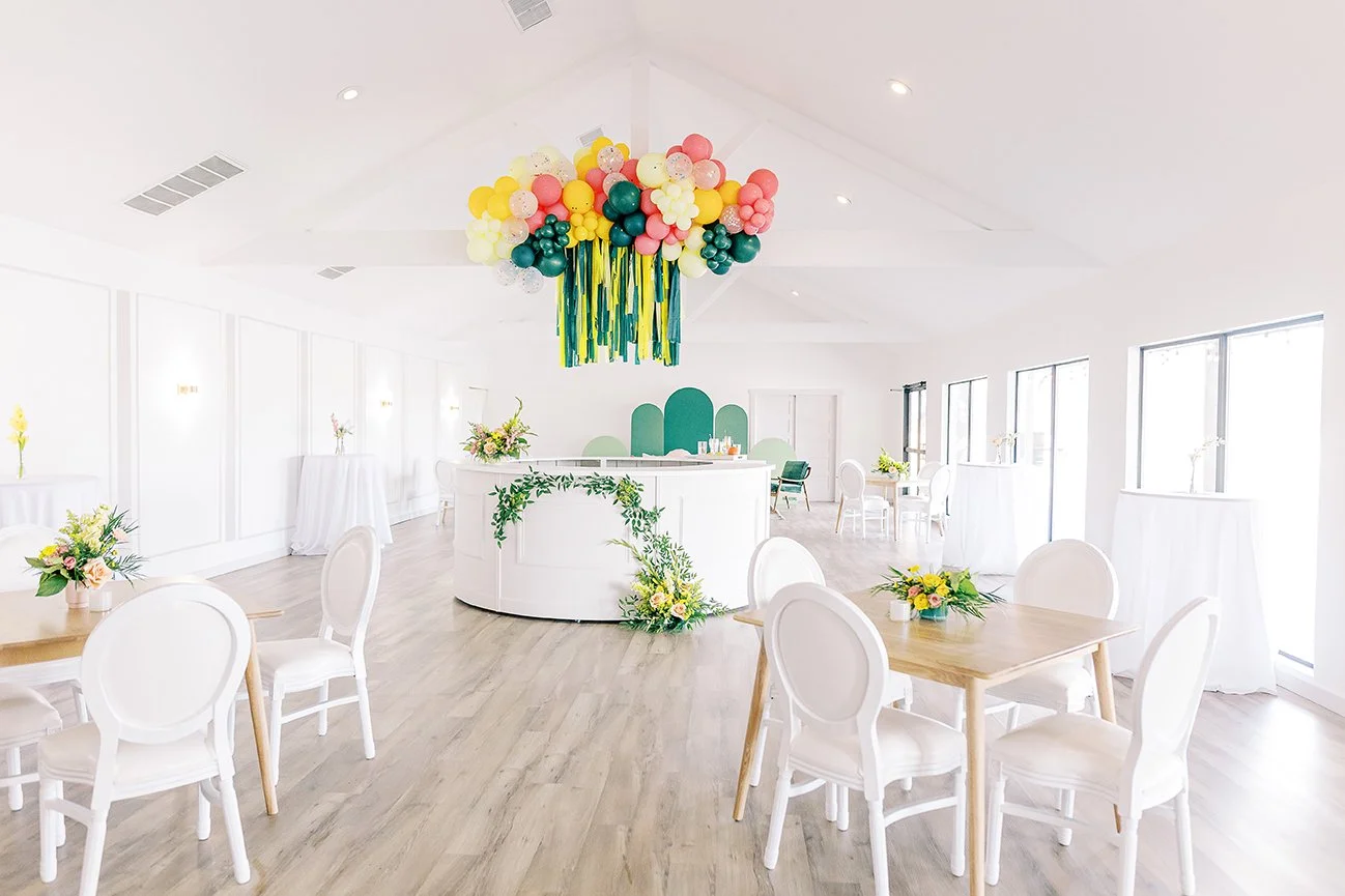 The Grand Hall is one of Tulsa’s largest wedding venues. The modern interior showcases clean lines, light wood flooring, stunning floor to ceiling windows, and luxurious bride and groom suites.